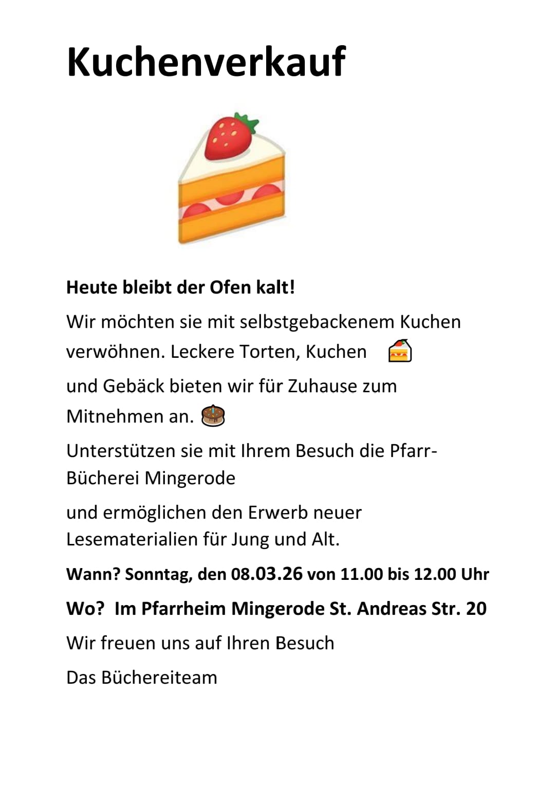 Kuchenverkauf des Pfarrbüchereiteams