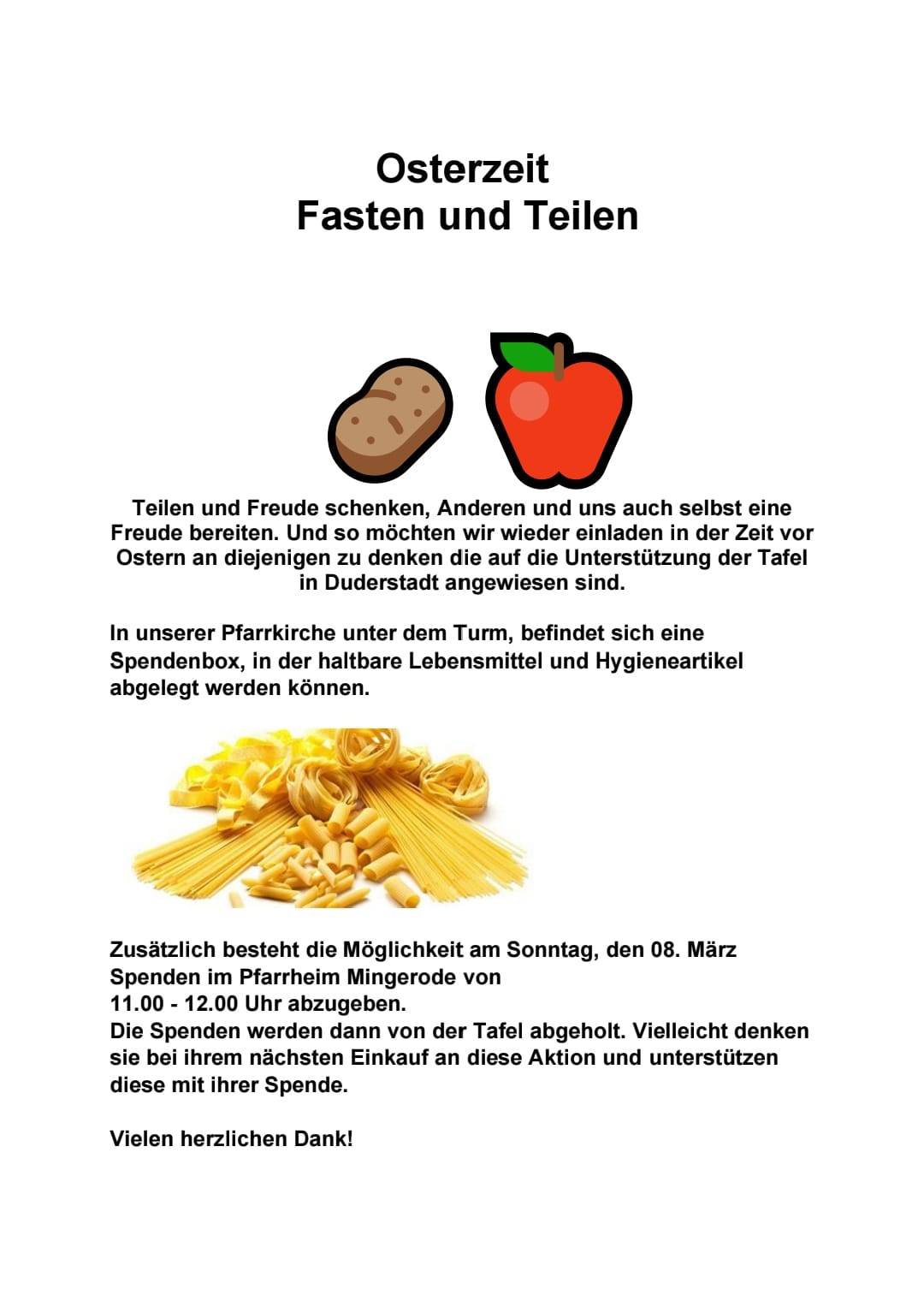 Spenden zur Osterzeit an die Duderstädter Tafel Größeres Bild ansehen Joachim Vetter2026-02-24T13:39:41+01:00 Seite teilen FacebookXWhatsAppPinterestE-Mail Ähnliche Beiträge Wahlhelfer/innen für Kommunalwahl am 13.09.26 gesucht Wahlhelfer/innen für Kommunalwahl am 13.09.26 gesucht 24. Februar 2026 | 0 Kommentare Abholung der Weihnachtsbäume Abholung der Weihnachtsbäume 6. Januar 2026 | 0 Kommentare Weihnachtsgruß des Ortsrates Weihnachtsgruß des Ortsrates 14. Dezember 2025 | 0 Kommentare Mingeröder Bürgerbaum Mingeröder Bürgerbaum 3. Dezember 2025 | 0 Kommentare Auszeit im Advent Auszeit im Advent 8. November 2025 | 0 Kommentare